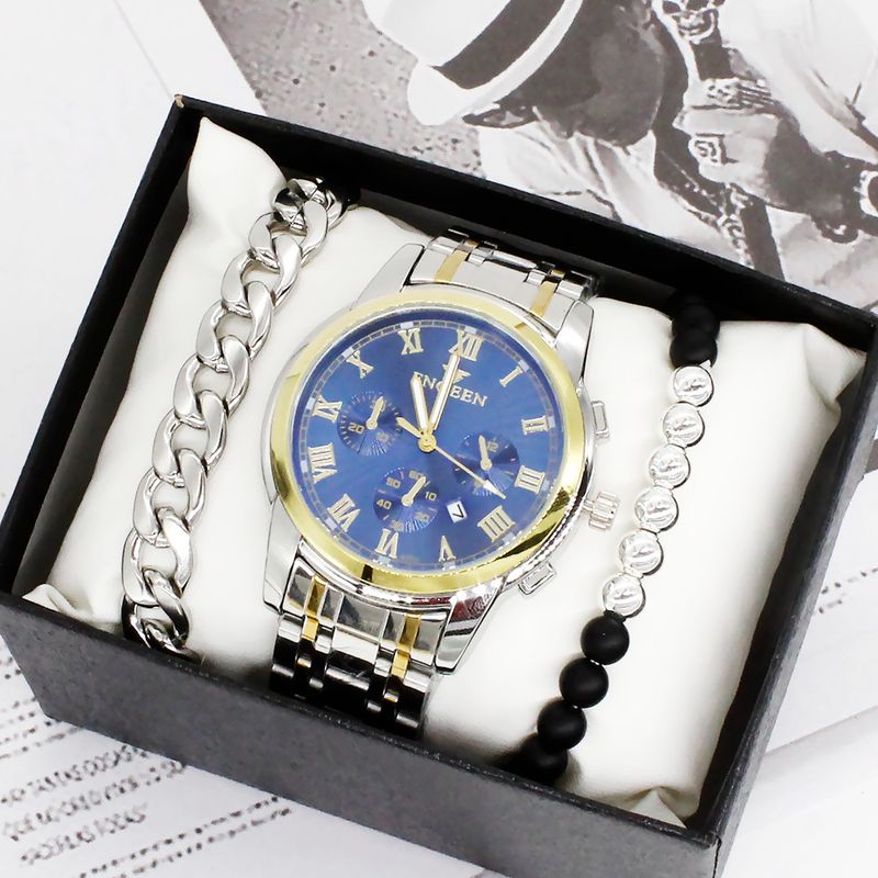 Men Blue Dial Non-Mechanical Quartz Bracelet Men's Watch Set