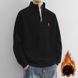 Men’s Fleece-Lined Half-Zip Sweatshirt – Korean Streetwear Style With Minimalist Tree Embroidery (Beige/Khaki/Black, Sizes M-4XL)