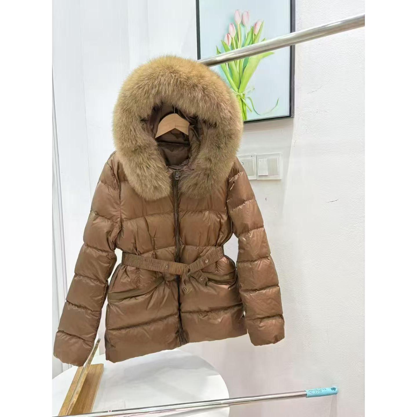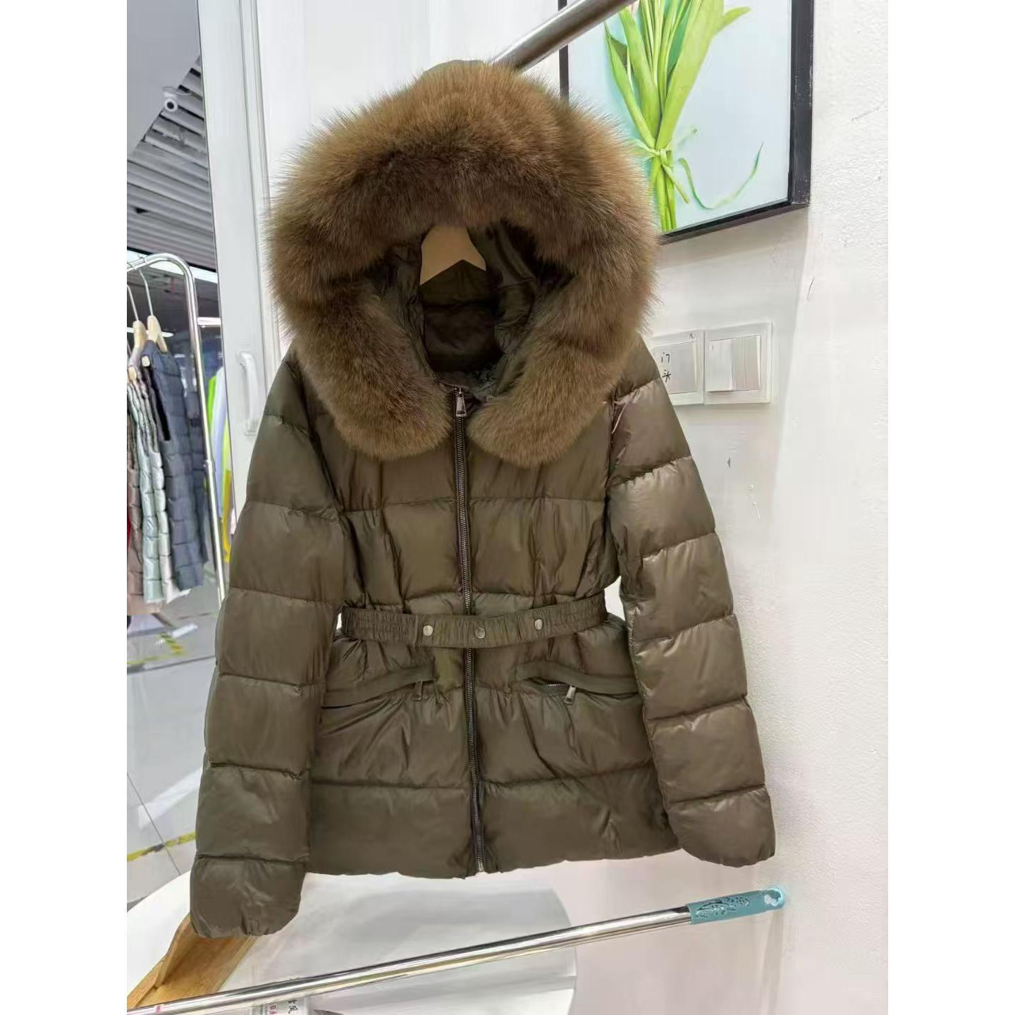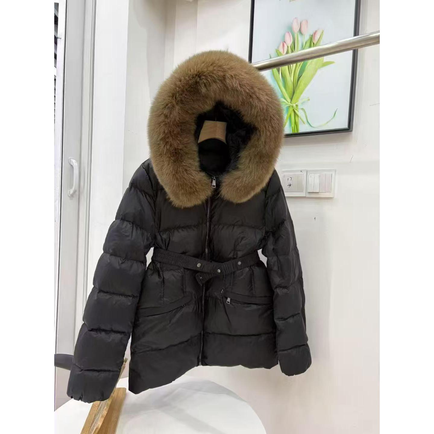 Mengjia Same Style Belt Waist Slimming Down Jacket Women Short Fox Fur Collar 2025 New Winter