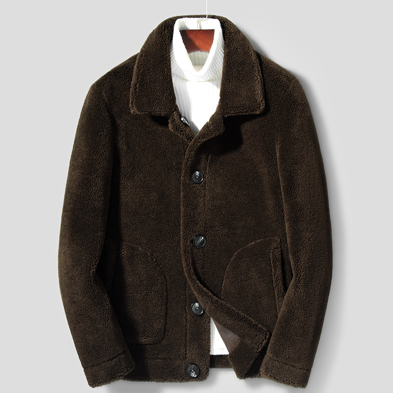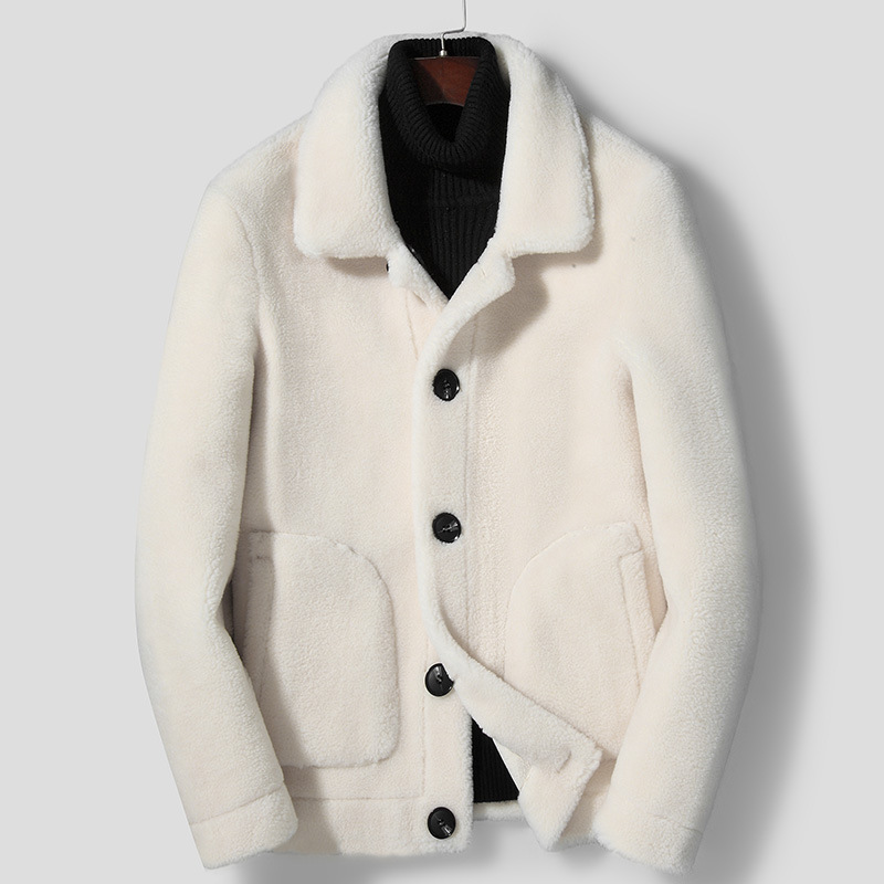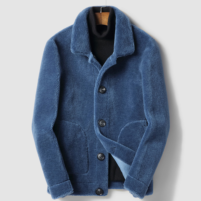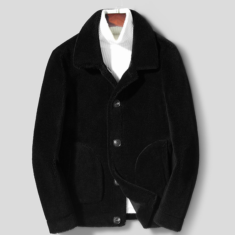 Îmbrăcăminte bărbătească, palton de lână, shearling, palton bărbătesc din blană și piele, jachetă de iarnă pentru bărbați, blană, pentru vârstă mijlocie și tineri, cu rever pe două fețe