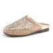 MingLiu Baotou Slippers Women's 2025 Summer New Water Diamond Breathable Mesh Hollow Out Outer Half Drag Women's Casual Flat Bottom Women's Shoes