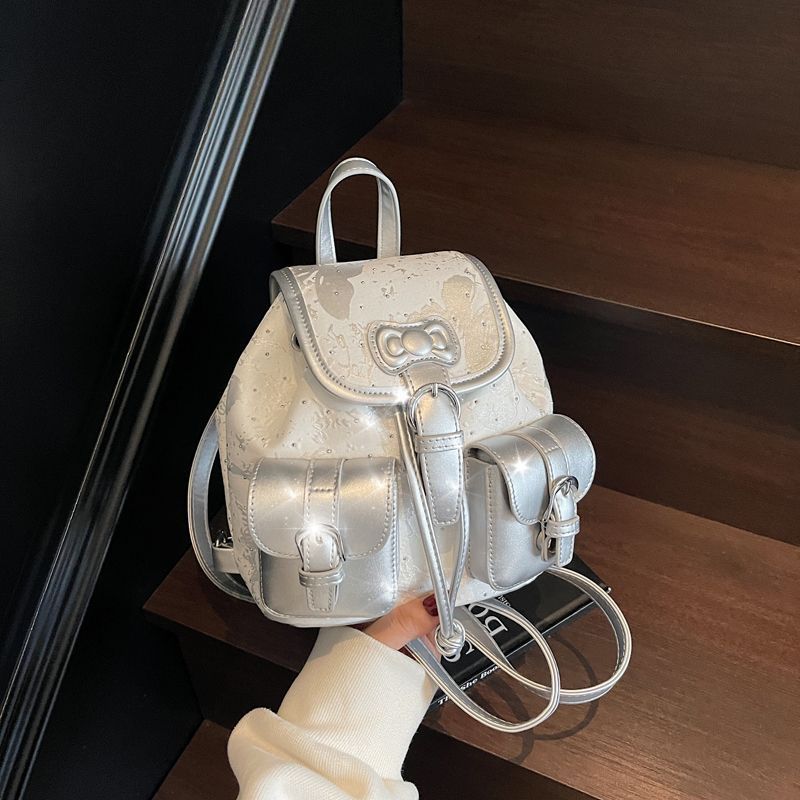 Bow Mini Backpack 2025 Fall/Winter New Fashion Rhinestone Handbag Large Capacity Double Shoulder Bag