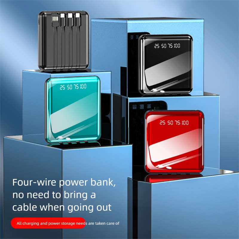 Mini Portable Built-in Cable Bank 20000mAh Large Capacity Mirror Digital Display Mobile Power Gift