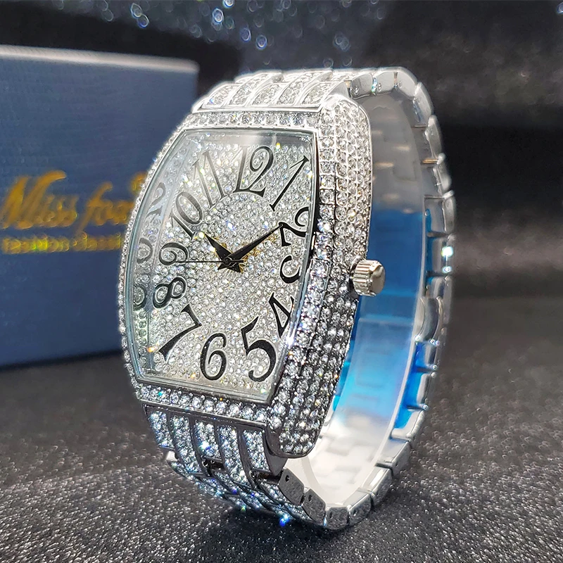 MISSFOX Ceas de aur pentru bărbați, ceasuri hip-hop bling bling tonneau cu cuarț pentru bărbați mari, impermeabil, ceas de mână Millerable