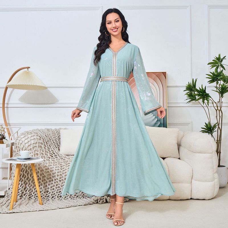 Mt153 Rochie musulmană la modă, cu guler în V, model leagăn, model floral