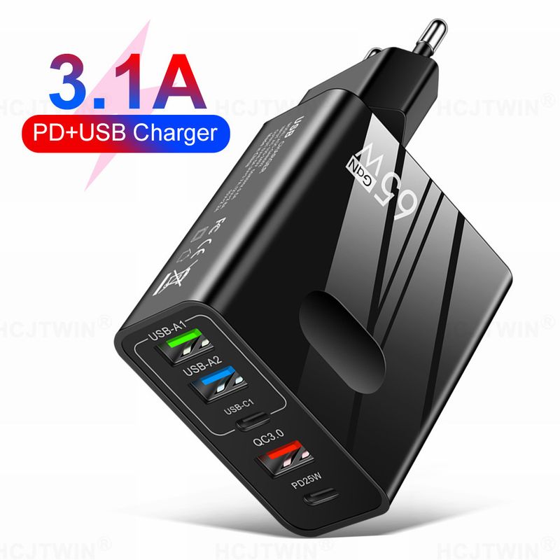 Încărcător de telefon mobil rapid standard de 65W, tip C PD+3USB, pentru festivaluri de muzică, 3.1A, cap de încărcare pentru călătorii, 65W