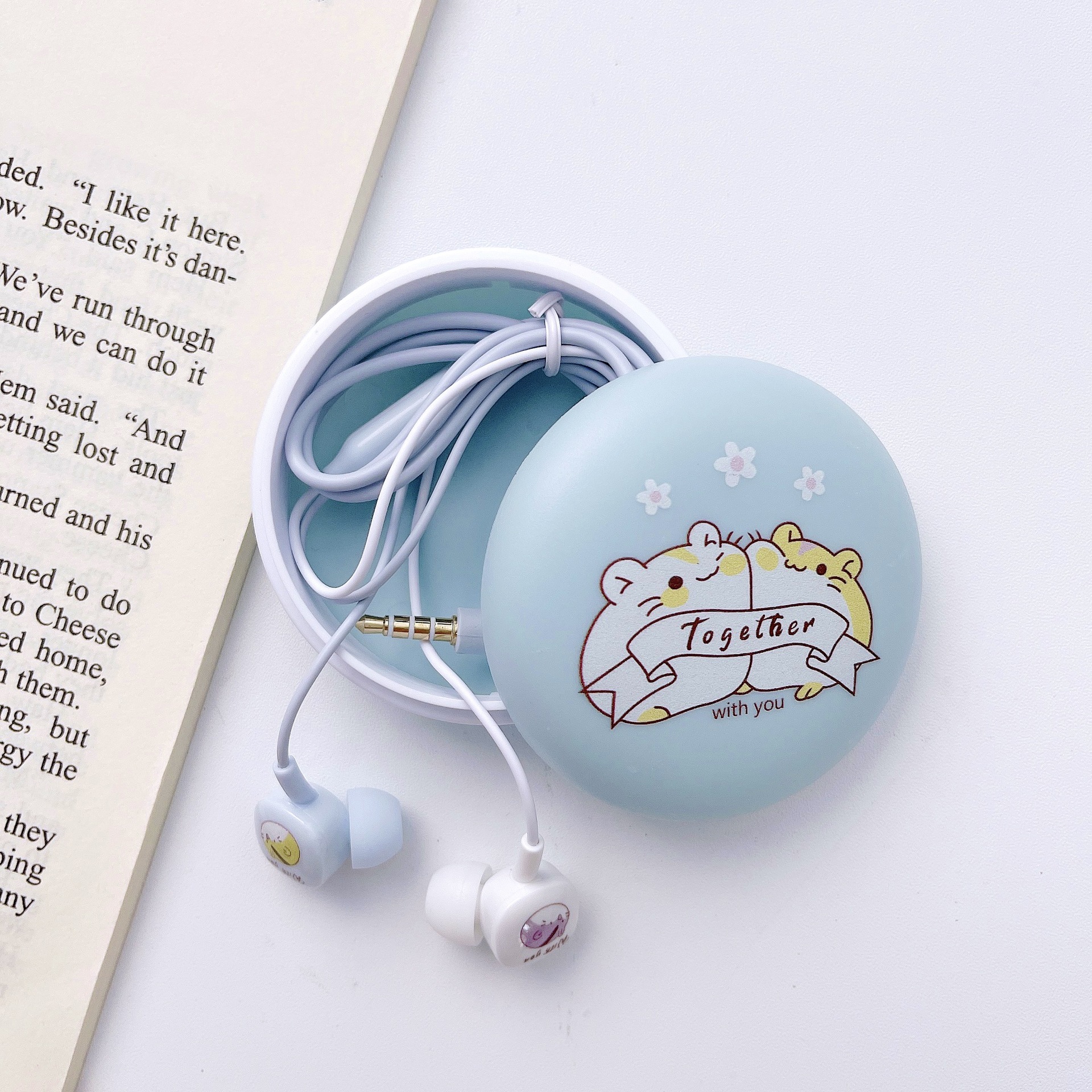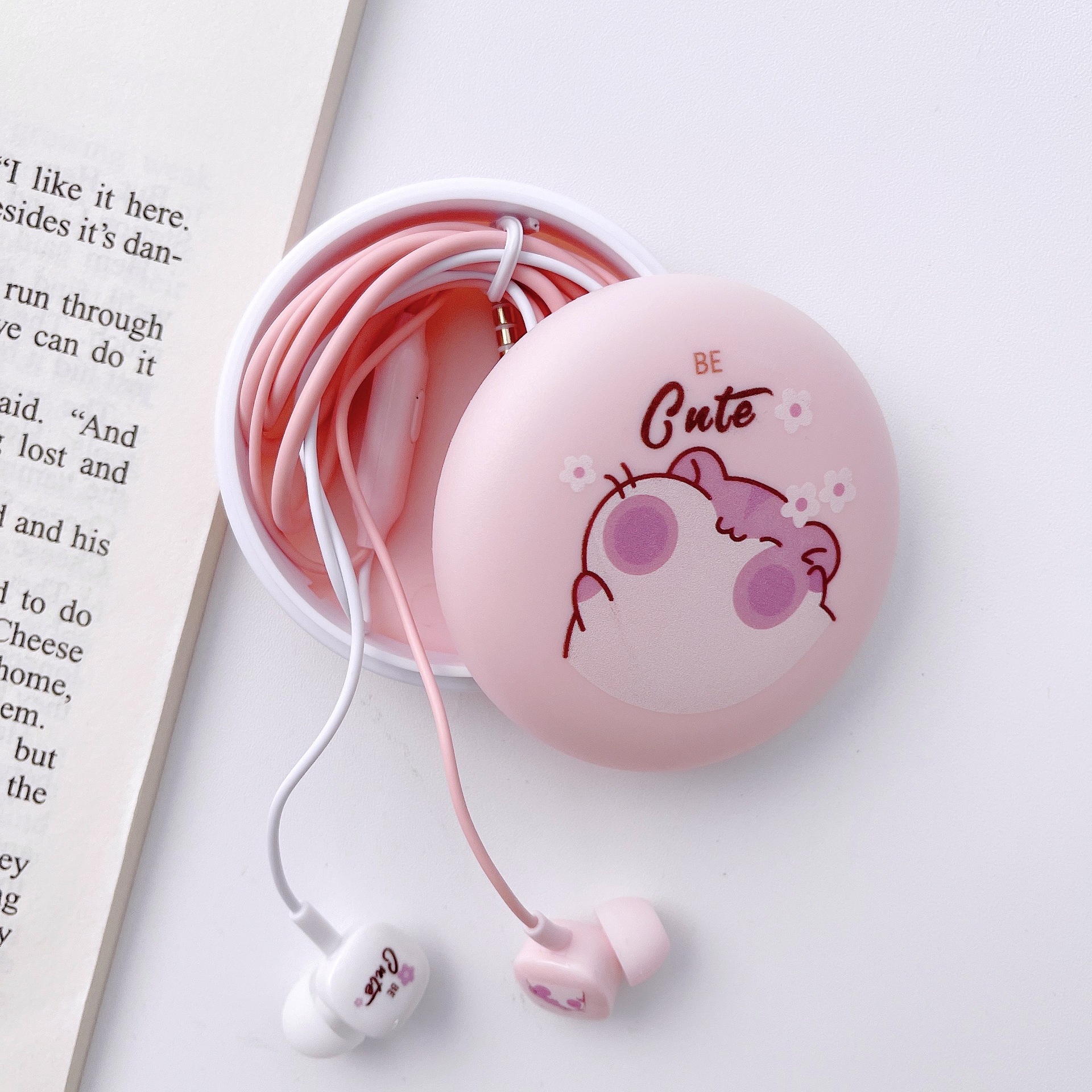 New cartoon storage box and subwoofer headpho cable suitable for OPPO Huawei vivo Redmi phos with universal