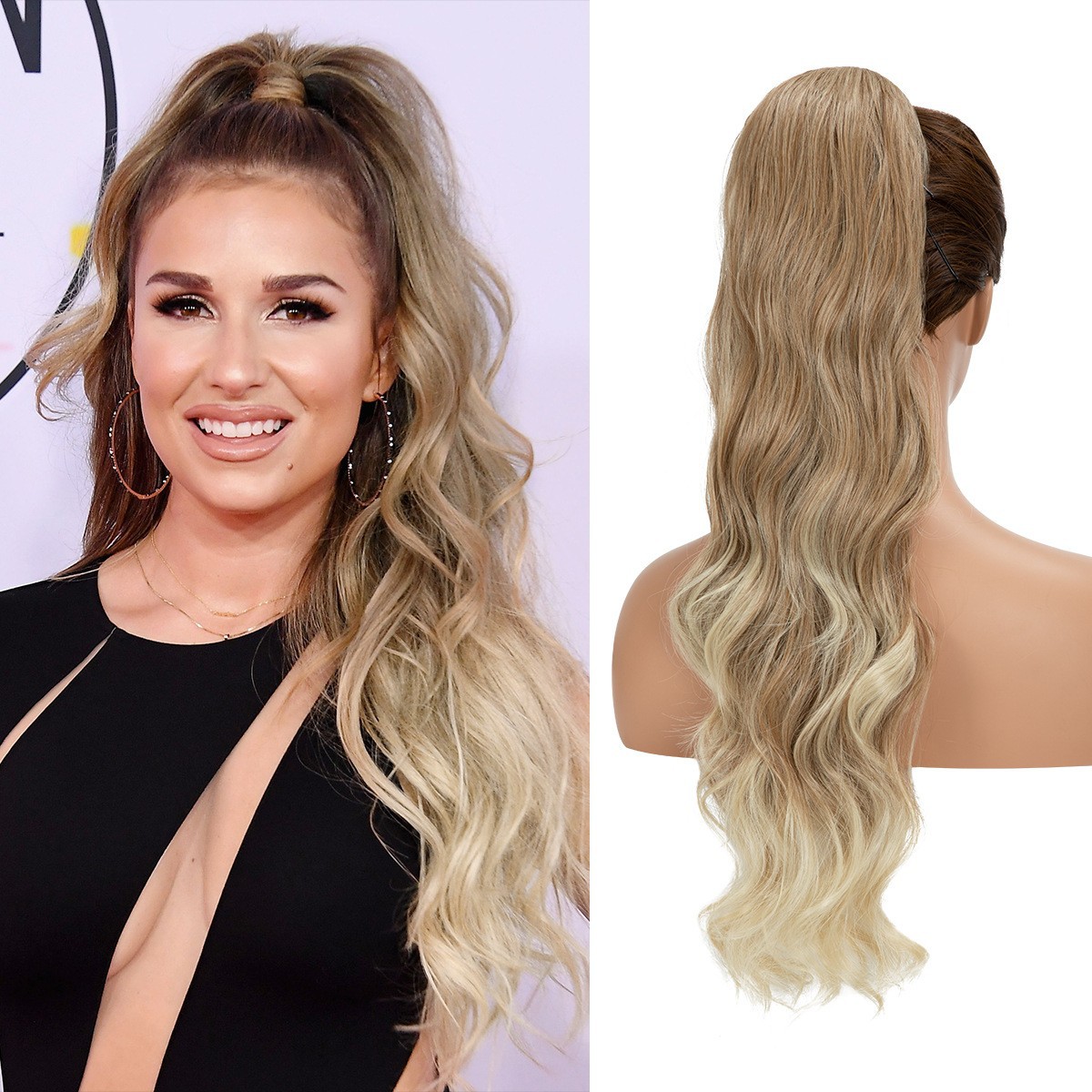 Perucă europeană și americană nouă, coadă de cal, păr lung și creț, cu șnur, fibră chimică, coadă de cal, ondulație de apă, coade de mătase la temperatură înaltă