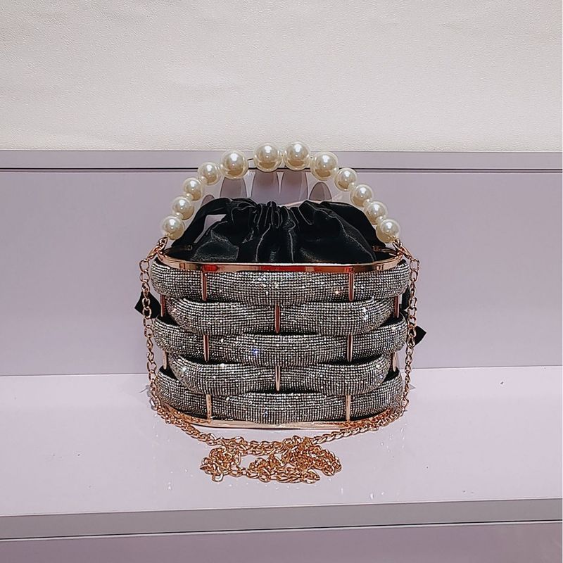 New Niche Design Socialite Evening Shiny Rhinestone Striped Wrapped Handbag Crossbody Women's Bag