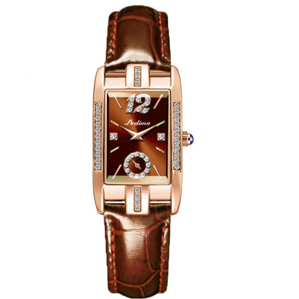 New Square Women's Temperament Fashion Versatile Set with Diamond Waterproof Watch Solid Steel Band Butterfly Buckle