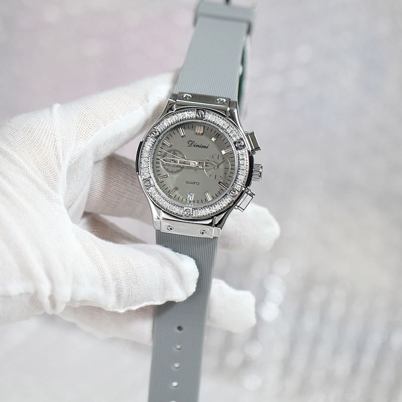 New universal women's watch with diamond inlay and calendar, five needle silicone tape waterproof watch, fashionable