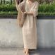 Fustă lungă din bumbac și in, culoare solidă, cu mâneci scurte, lejeră, cu decolteu în V