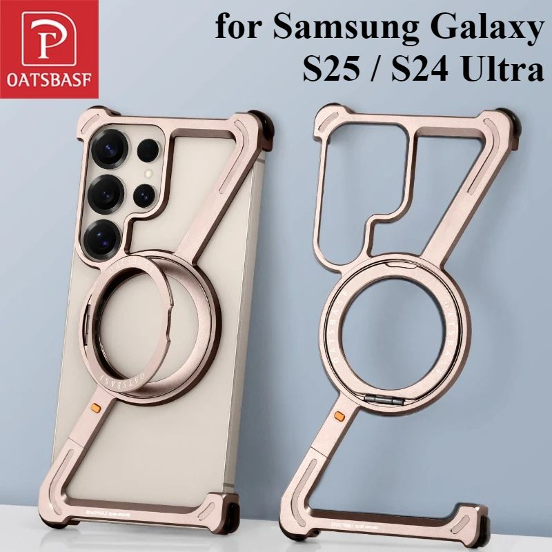 Oatsbasf Z-Shaped Metal Magnetic Phone Case for Samsung Galaxy S25 S24 Ultra Case with Stand 360° Rotate Magsafe Bumper Covers
