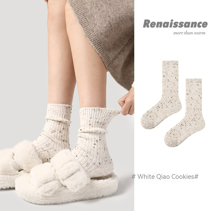 Șosete noi la modă și artistice din alpaca pentru femei, albe și delicate, cu imprimeu la buline, de lungime medie, șosete din lână îngroșate și calde pentru copii
