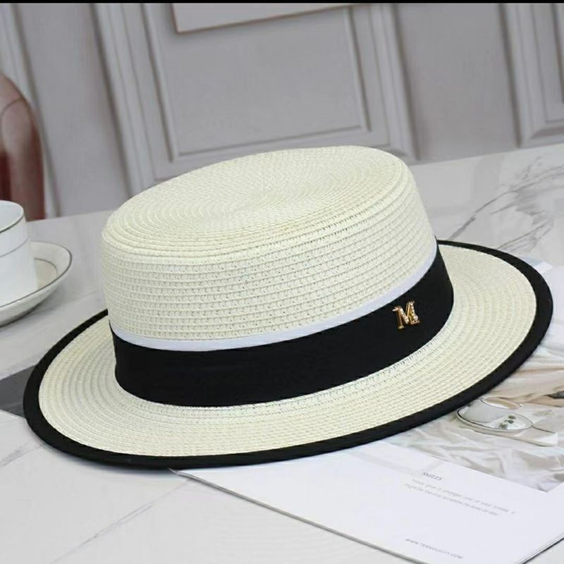 Pălărie de paie plată țesută nouă pentru femei, pentru vacanță la mare, cu umbrire și protecție solară, cu litere pentru protecție UV și pălărie de soare care acoperă fața