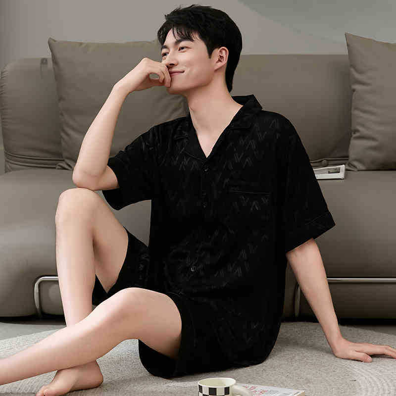 Pajamas Men's Summer Ice Silk Short Sleeve Shorts Thin Boys Simple Casual Simulation Silk Teen Homewear Set