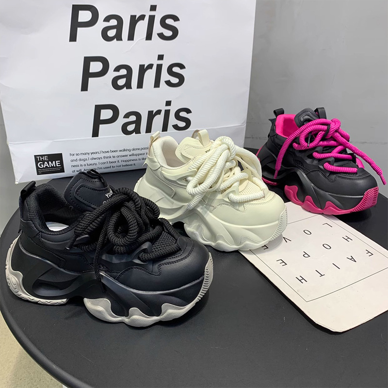 Genuine leather father's shoes, women's shoes, new autumn 2023 popcorn puff, small, lightweight, thick soled, and elevated sneakers