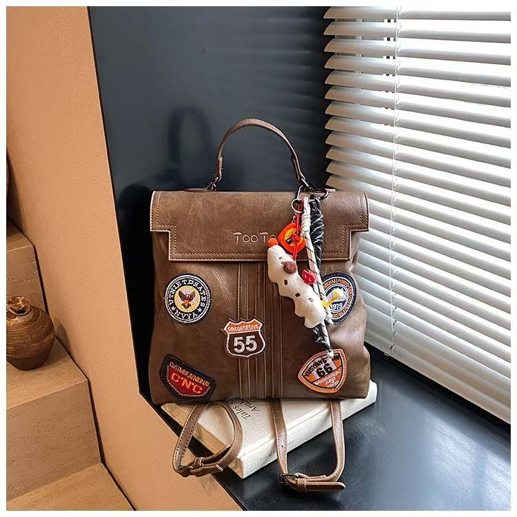 Personality Small Retro-striped Handbag Travel Simple Assorted Embroidered Sticker Backpack