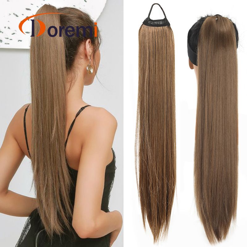 Perucă de extensie pentru femei cu bandă de piele, păr lung și drept, din fibră chimică, 70 cm și 150 g, coadă de cal din fibră chimică moale
