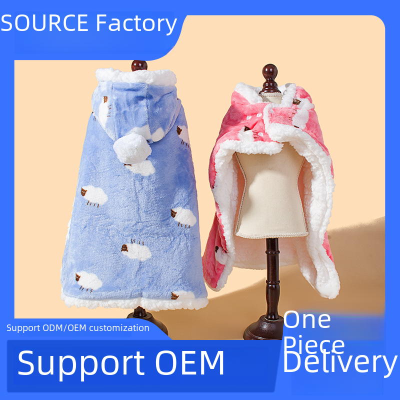 Pet Cute Cloak Autumn and Winter Cotton Thickened Warm Hooded Cloak Blanket Polyester Dog Clothing Source Factory