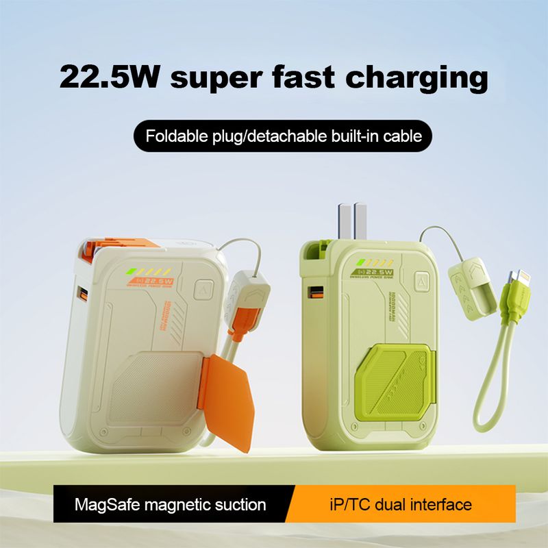 10000 mAh 22.5-W Charging Dock, Large Capacity, Magnetic Power Bank, 15W, Wireless Fast Charging Dock, Integrated Foldable Charger, 10000 mAh, portable, USB C PD20 W, fast charging, external backup auxiliary mobile battery with Type-C lighting cable for iPhone 16, 15, 13, 12, Samsung, Xiaomi, Huawei, power bank