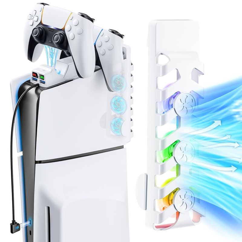 PS5 SLIM 2-in-1 Fan Stand Charger P5 Controller Charging Dock Console Cooling RGB Light Space Storage