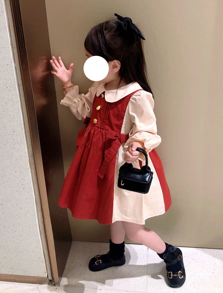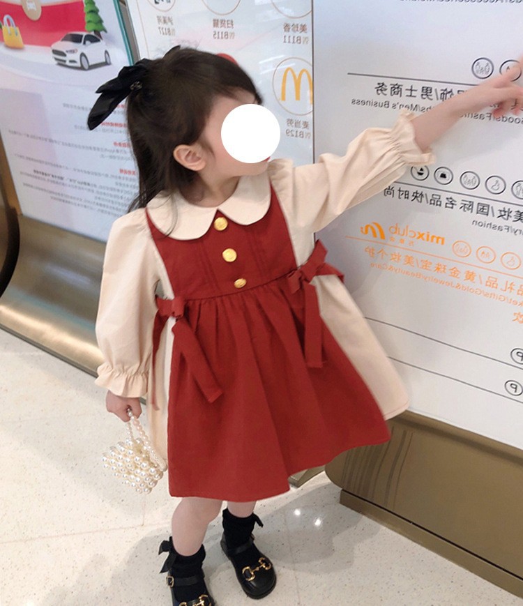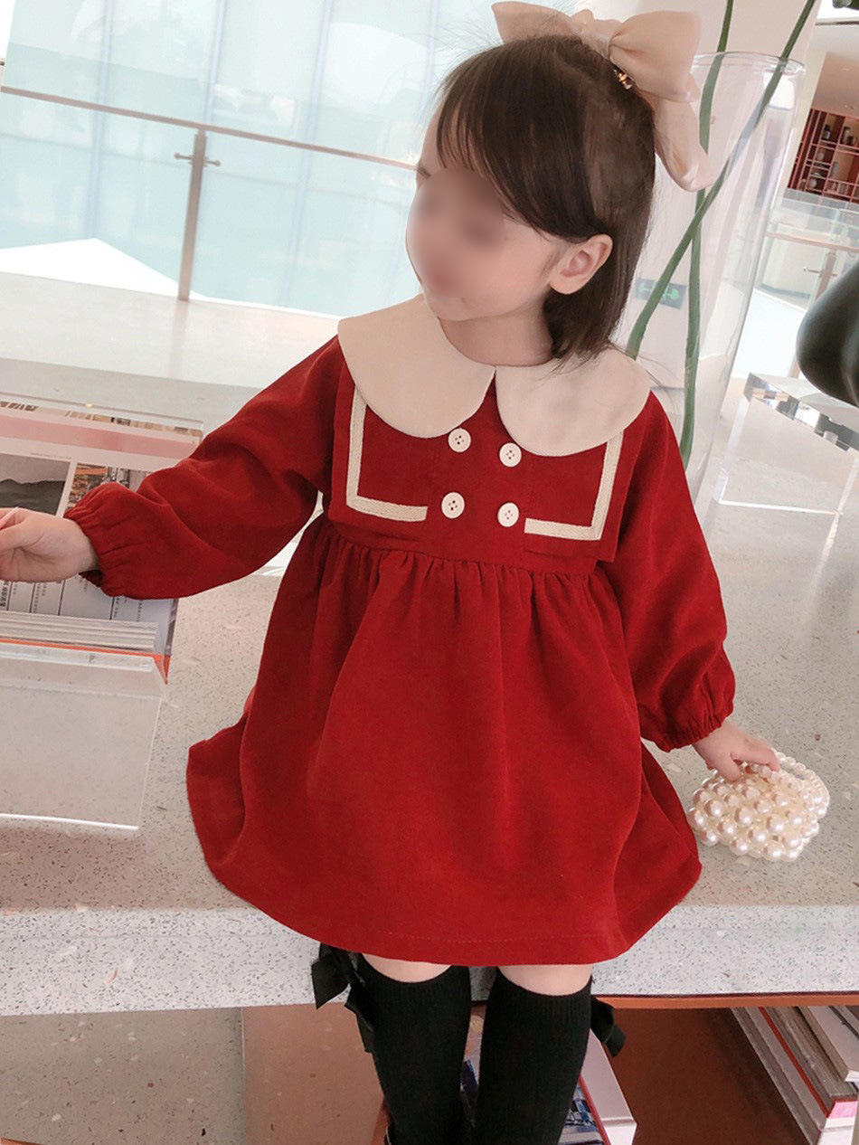 Rochie de primăvară-toamnă pentru copii, cu guler de păpușă, rochie nouă roșie și occidentală coreeană, stil coreean