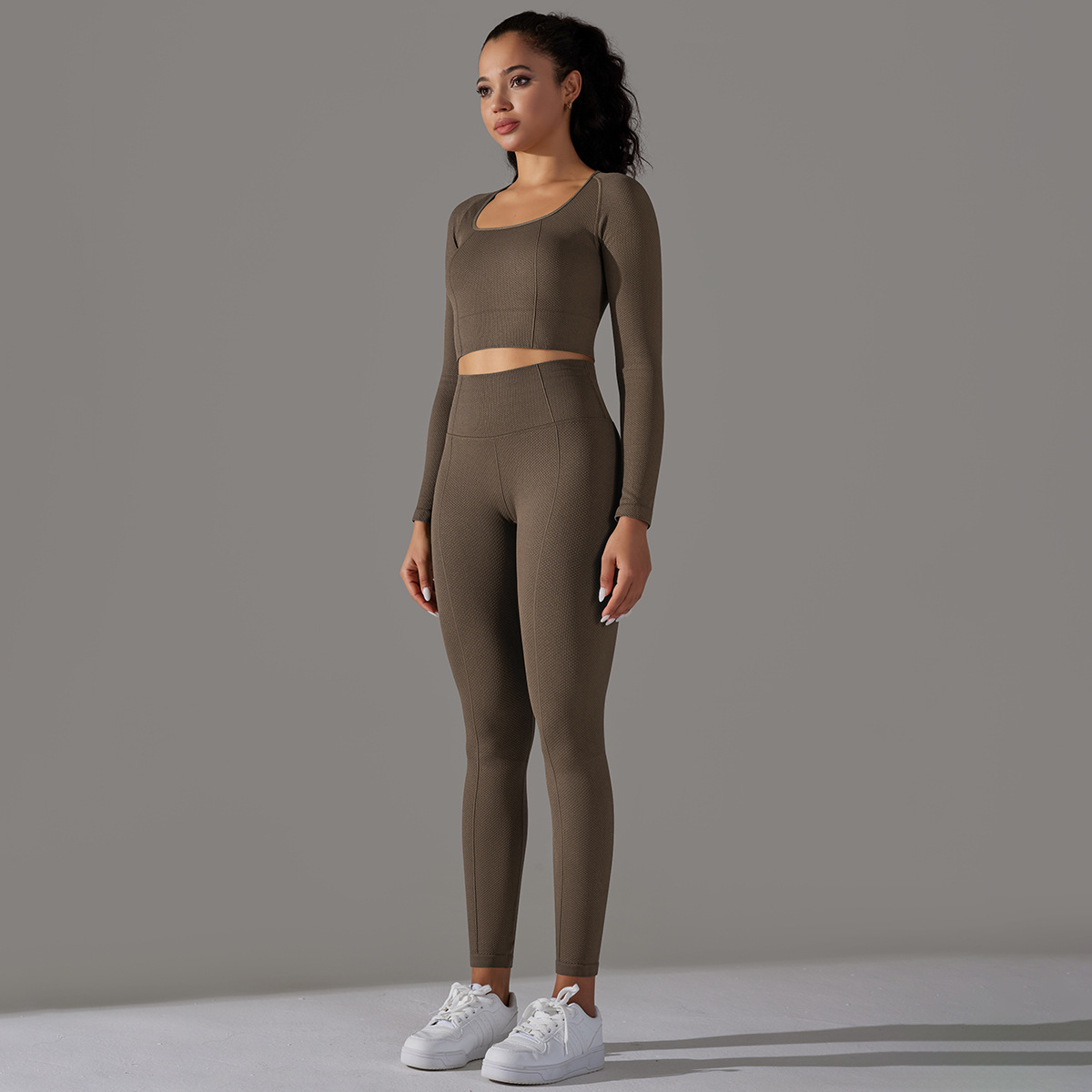Rochie de yoga Jacquard pentru femei, cu mânecă lungă, talie înaltă, colanți de șold, îmbrăcăminte sport pentru fitness
