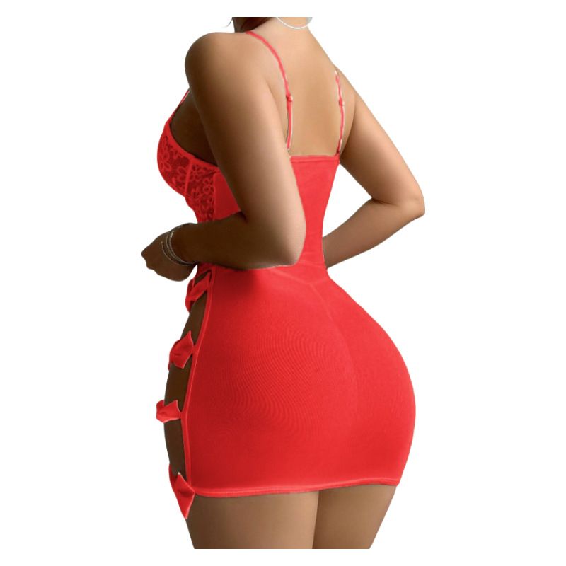 Sexy lingerie hollowed out hip hugging short skirt Valentine's Day red lace patchwork