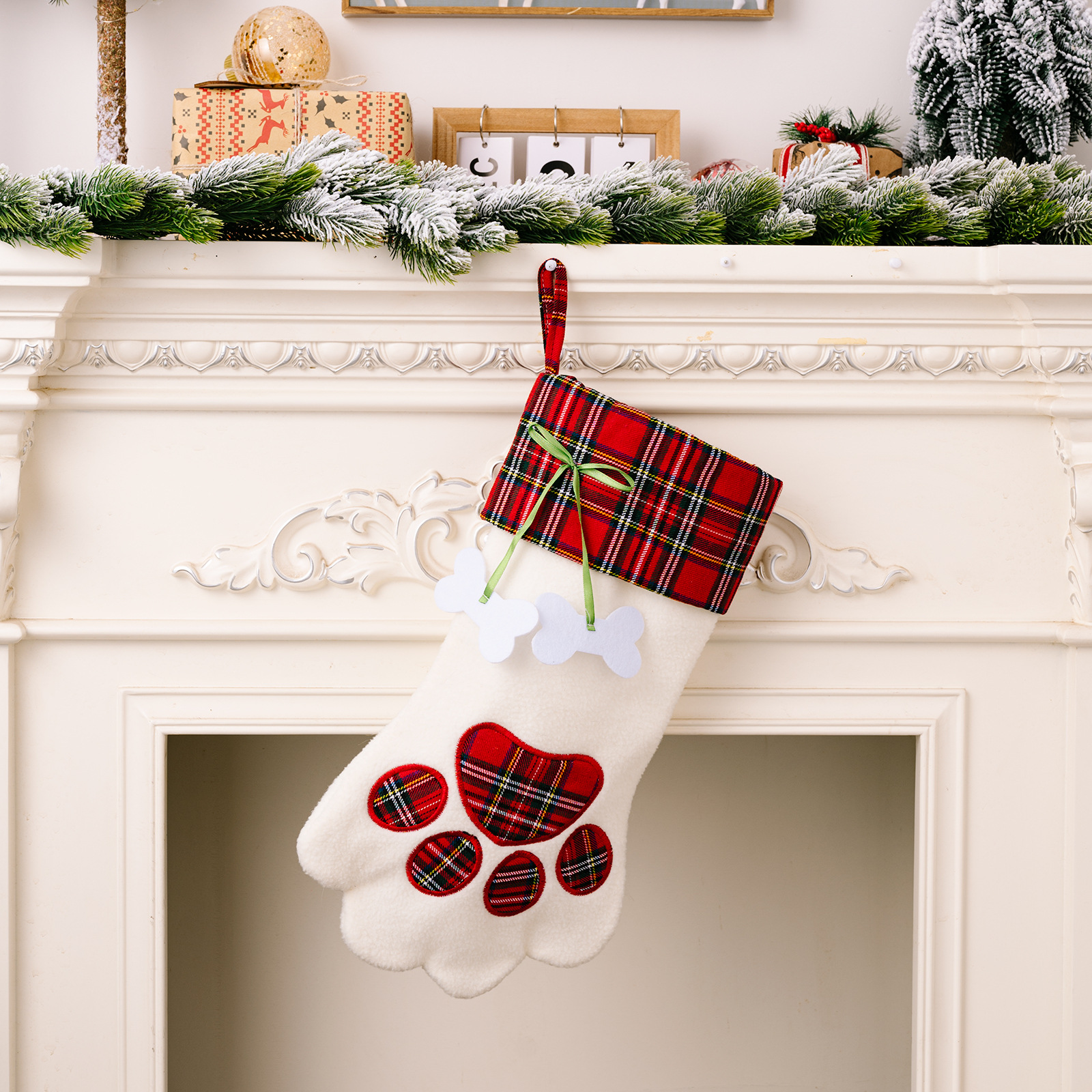Casă și grădină Haube decorațiuni noi de Crăciun șosete cu gheare de câine șosete cadou cu os de pisică și desene animate, pungă cadou în carouri