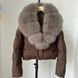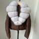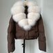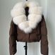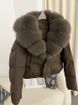 This short puffer jacket features an oversized fox fur collar and 95% white duck down fill, blending fashion and function seamlessly.