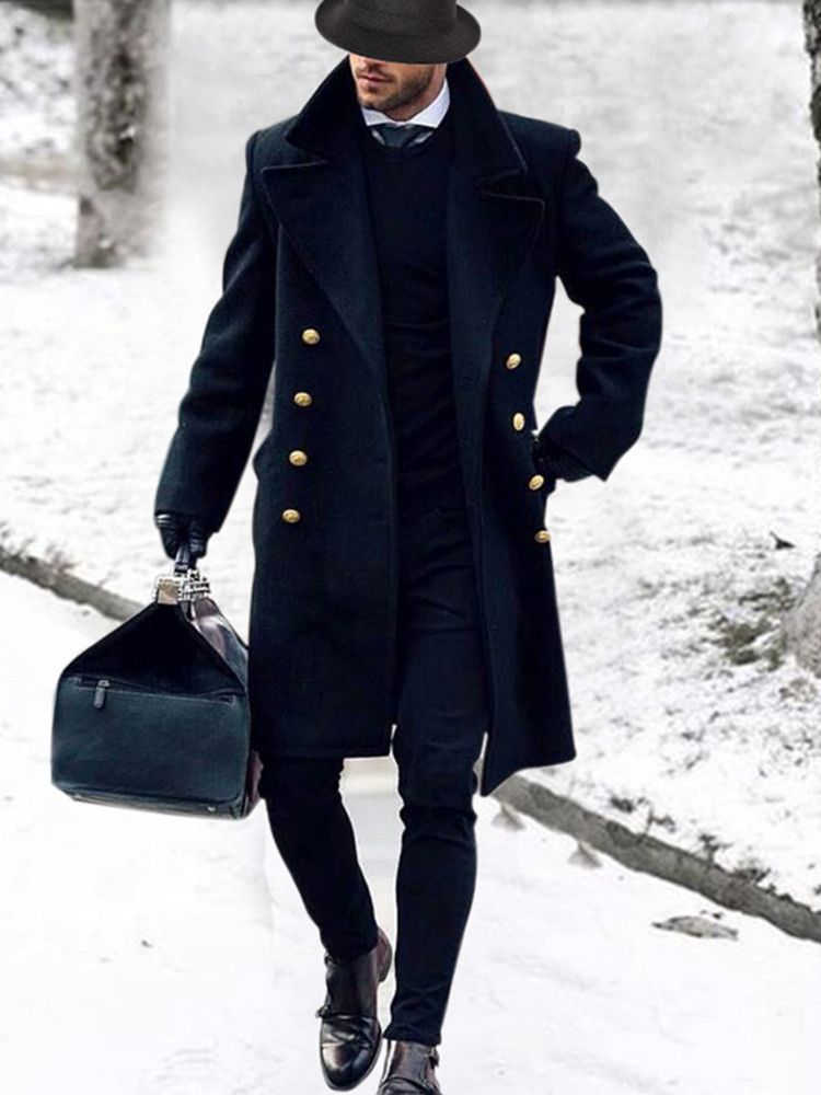Suitable For All Seasons 2025 Woolen Double-Breasted Jacket Trench Men's Wool Material Coat
