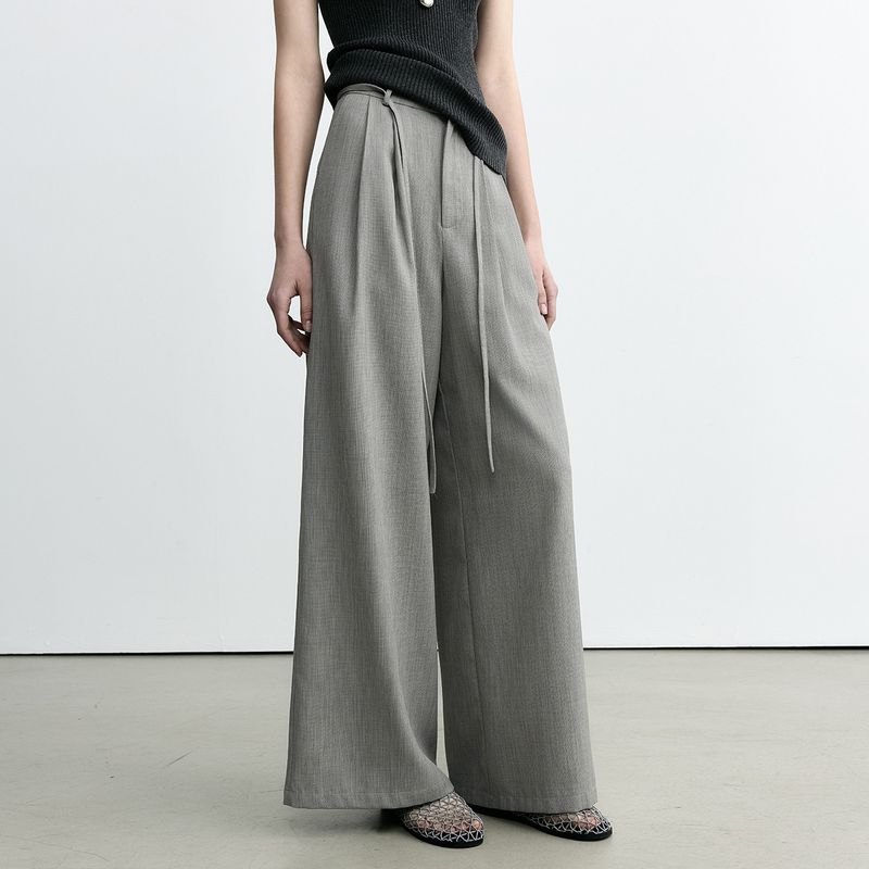 UMA WHITE Guangzhou Thirteen Factories Run Deng 2025 Spring Summer New Women's Suit Pants Tall Mixed Linen Wide-leg Pants