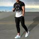 Set de două piese sport pentru bărbați, casual, de vară, cu mânecă scurtă, pantaloni lungi, imprimați digital cu față zâmbitoare 3D