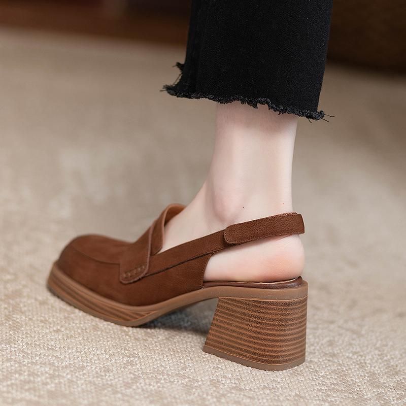 Super Comfortable Baotou Coarse Heel Sandals For Women Spring 2025 New Style Thick Bottom Round Head Back Air Velcro
