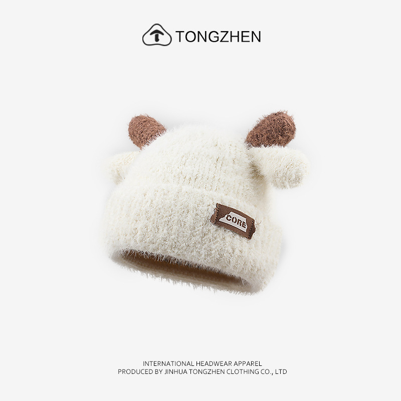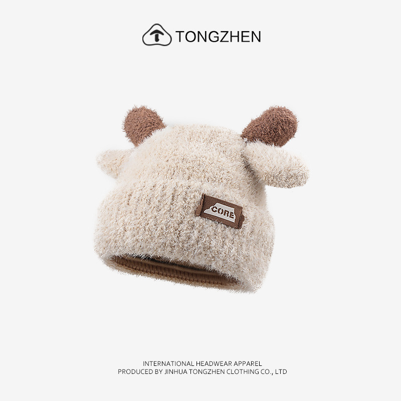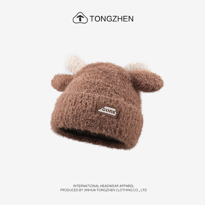 Sweet and Cute Plush Deer Horn Knitted Hat for Women in Autumn and Winter, Warm and Thick Ear Protection, Versatile Face Showing Small Knitted Hat