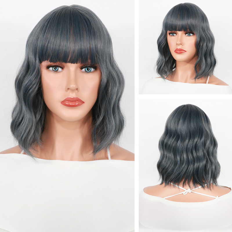 Perucă sintetică 2023 Nou Bobo Head Breton drept Păr sintetic multicolor Lungime până la umeri Scurt Creț