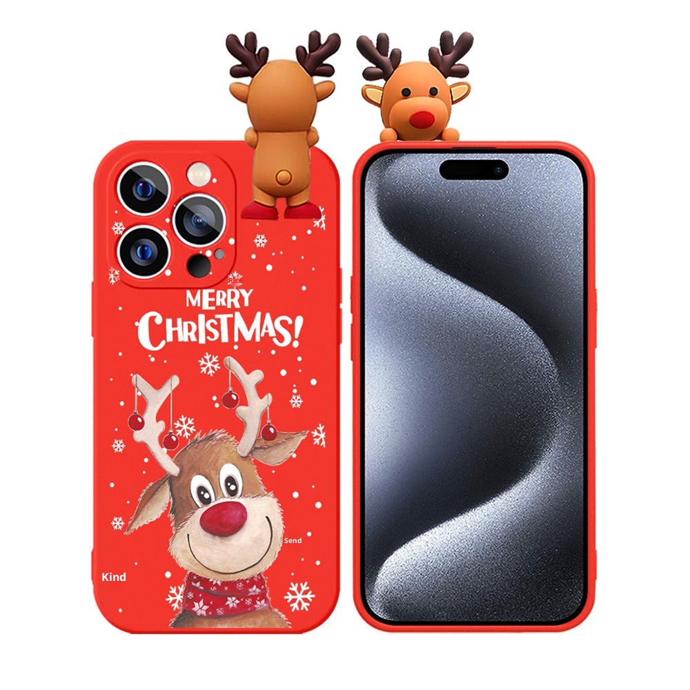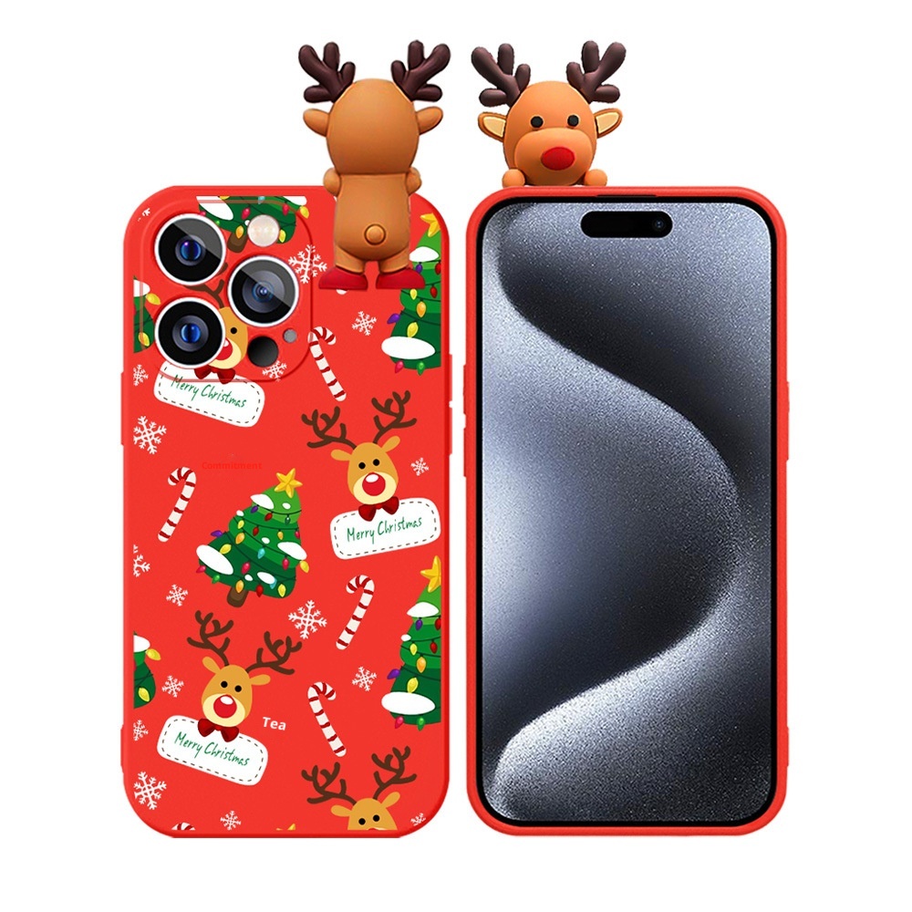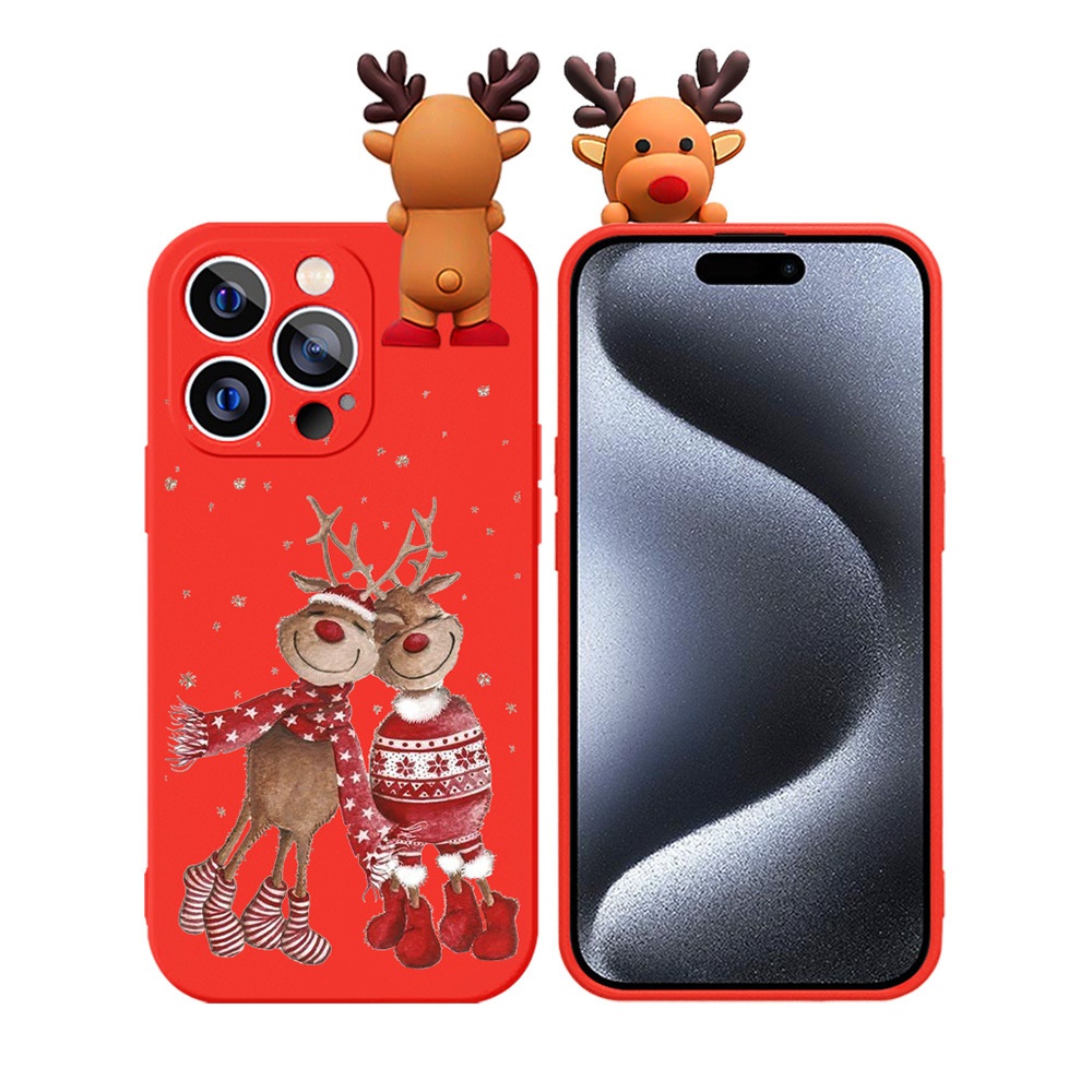 Suitable for 14 Phone Case 15 Pro Max Christmas Reindeer Embossed Figurine Pendant Precision Hole Phone Case 13