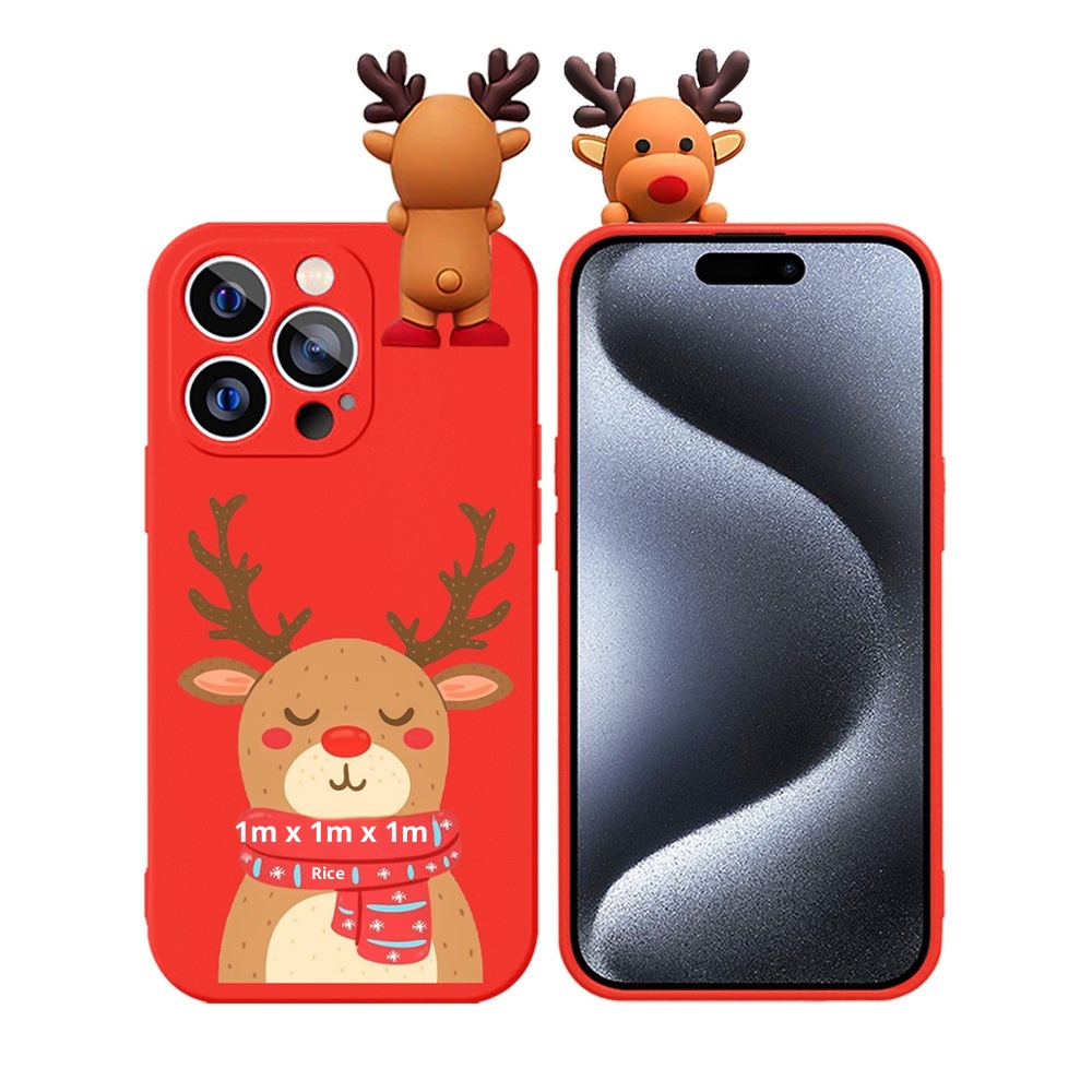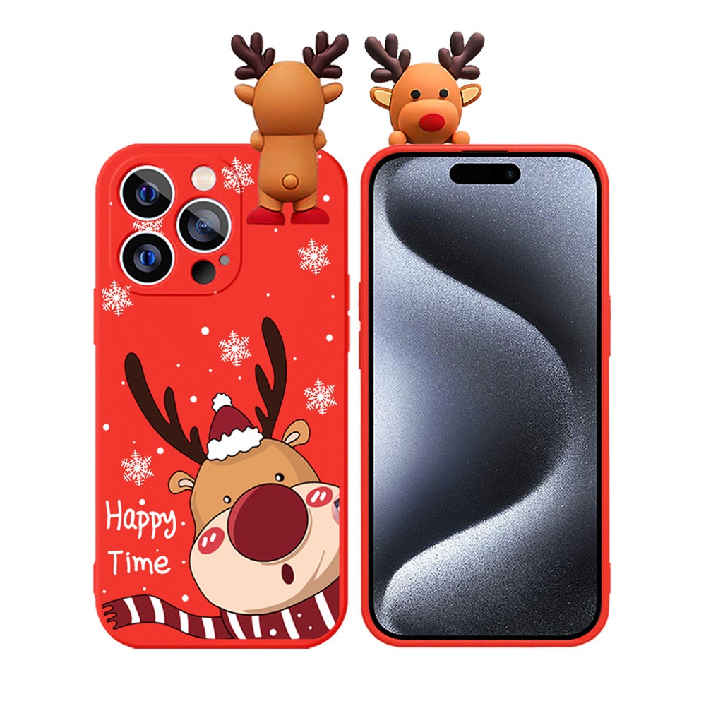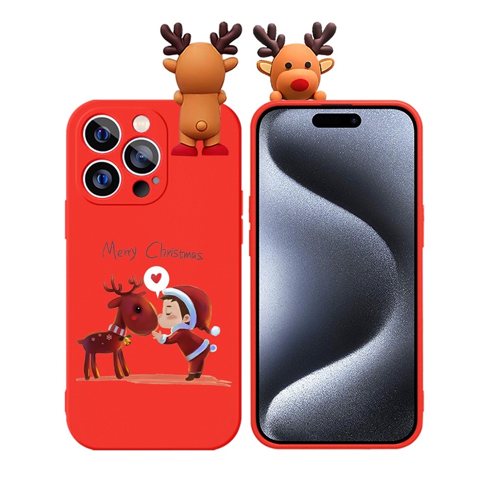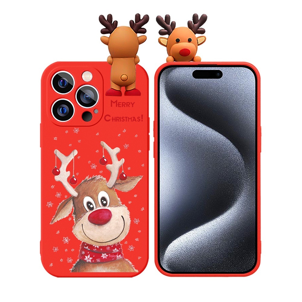 Suitable for 14 Phone Case 15 Pro Max Christmas Reindeer Embossed Figurine Pendant Precision Hole Phone Case 13