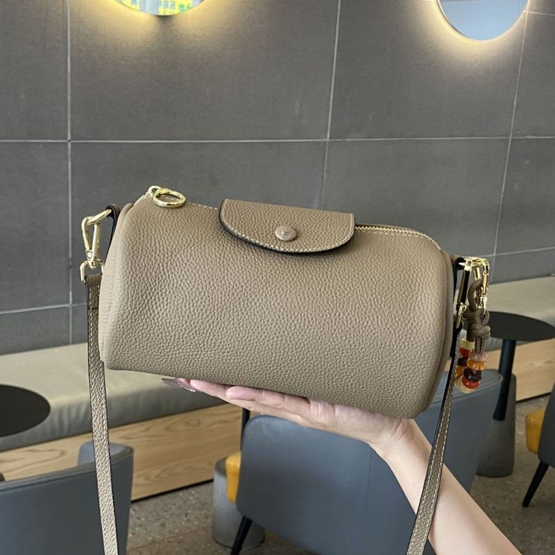 Top Layer Cowhide Women's Single Shoulder Crossbody Bag Boston Style Casual Trendy Shopping Handbag With Zipper Closure