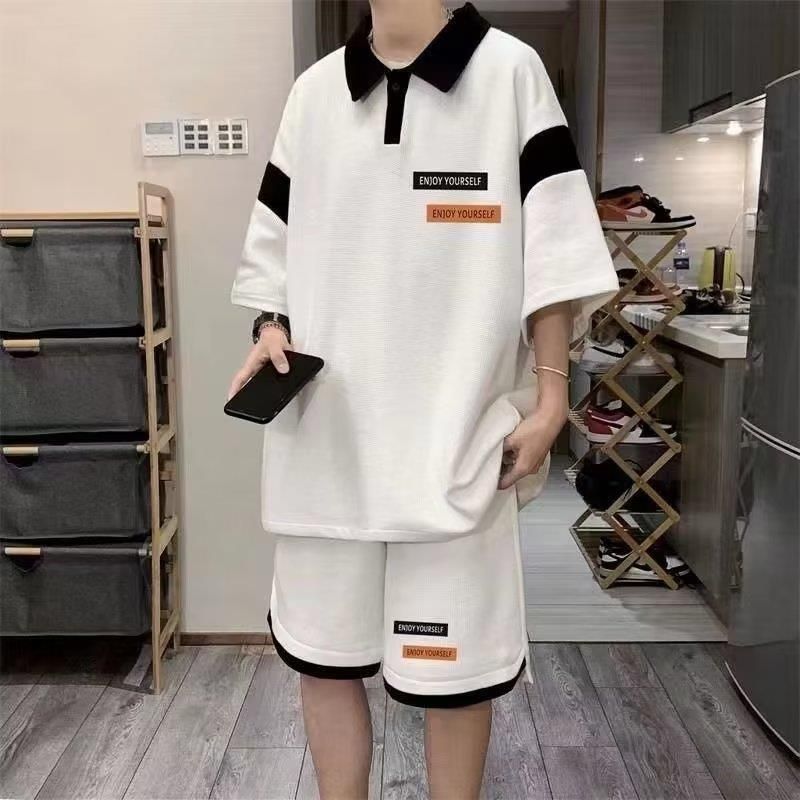 Short sleeved T-shirt, men's polo shirt, ruffian and handsome men's clothing, paired with a set of cool summer men's clothing, cool and handsome dressing set