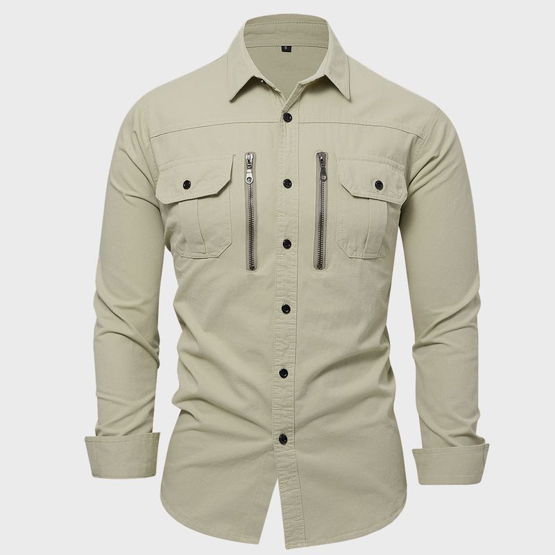 Unbeatable Quality 2024 Autumn New Men's Workwear Zipper Decoration Long Sleeved Plain Color 100 Cotton Shirt 119
