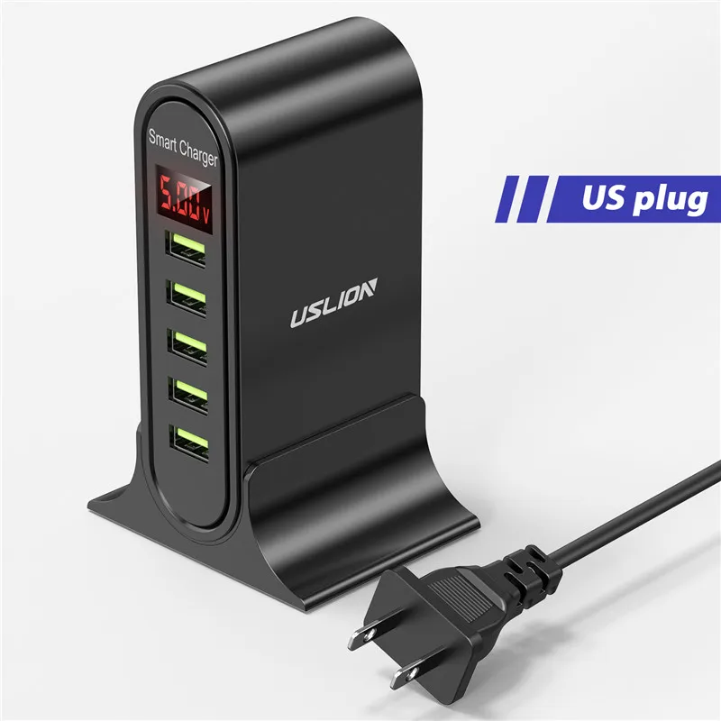USLION 5 Port Charger HUB Multi USB Charging Station Dock Desktop Wall Home LED Display Universal New Chargers EU US