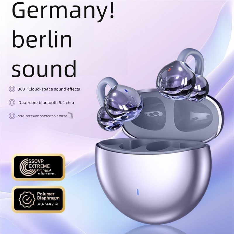 Voice Of Berlin 2025 New Bone Conduction Bluetooth Earphones Wireless Clip-on Aesthetic Sports Running High Sound