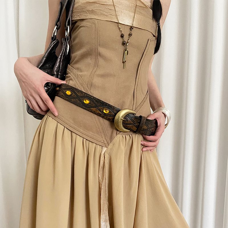 Vintage Western Cowboy Style Belt for Women with Bead Inlay Design, Suitable for Skirts and Jeans, Accessory