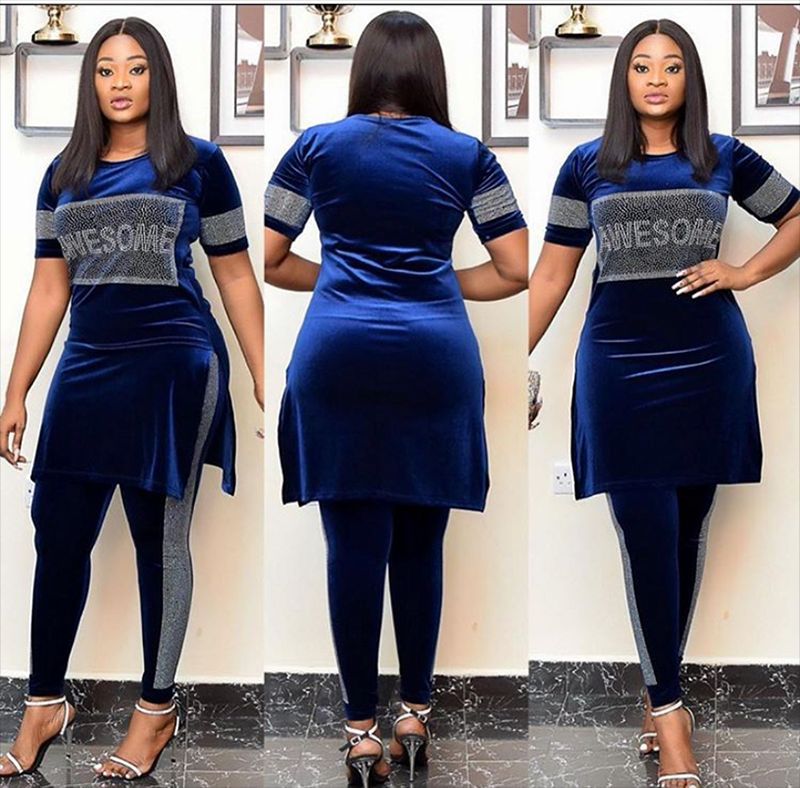 Women's Clothing fashion women's velvet top pencil pants slim suit hot diamond