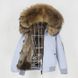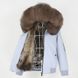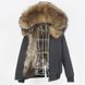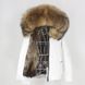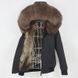 culorile : Carcasă exterioară neagră + guler din blană de vulpe argintie + căptușeală din blană de raton neagră