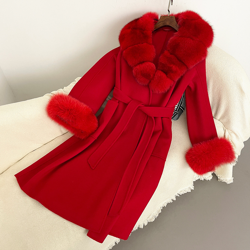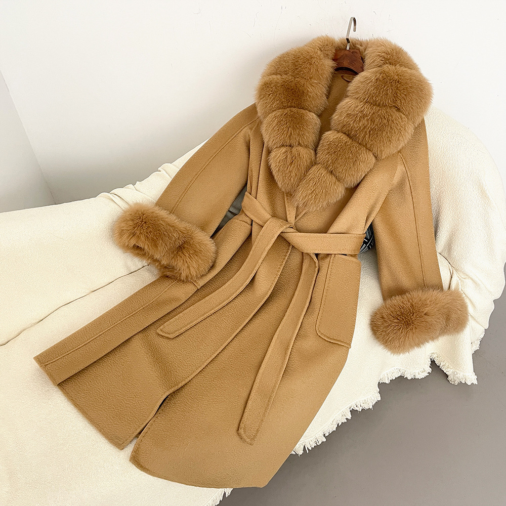 Women's Clothing Oversized Real Fox Fur Collar Pure Wool Women's Loose Autumn And Winter New High-end Coat