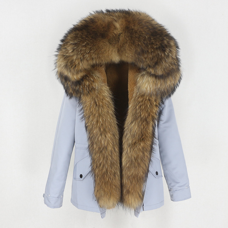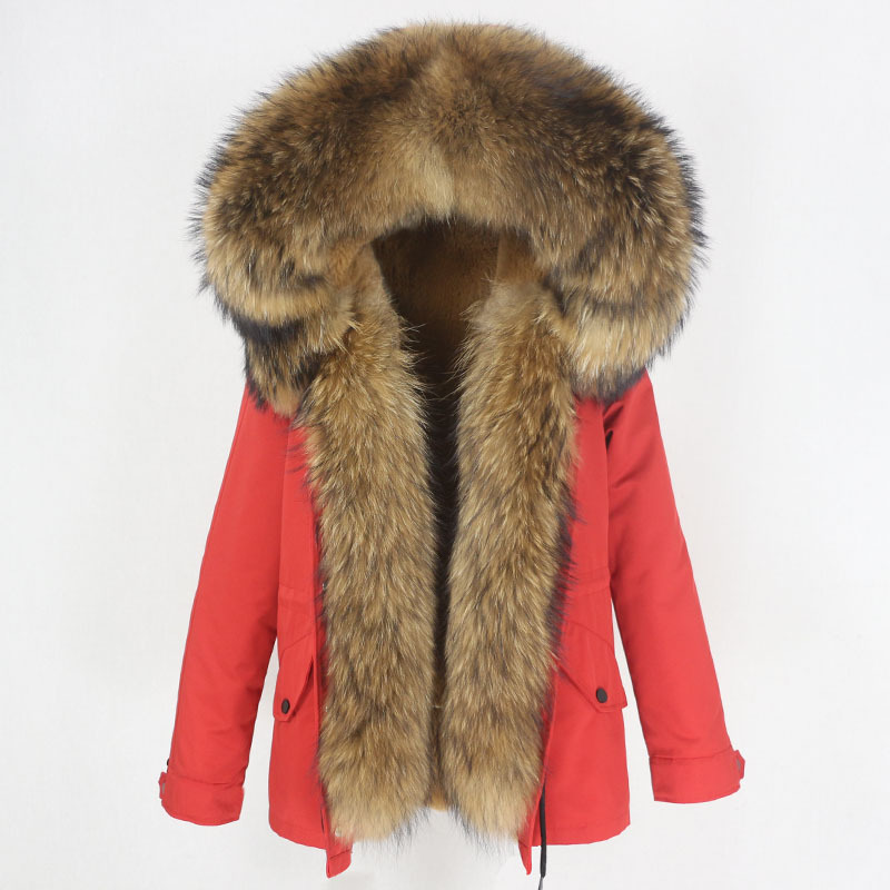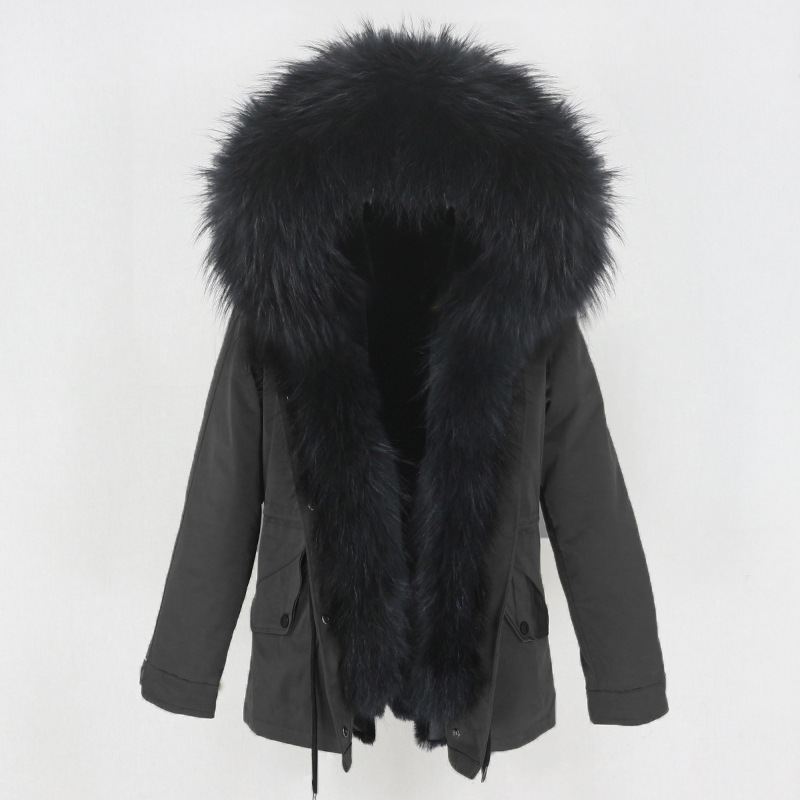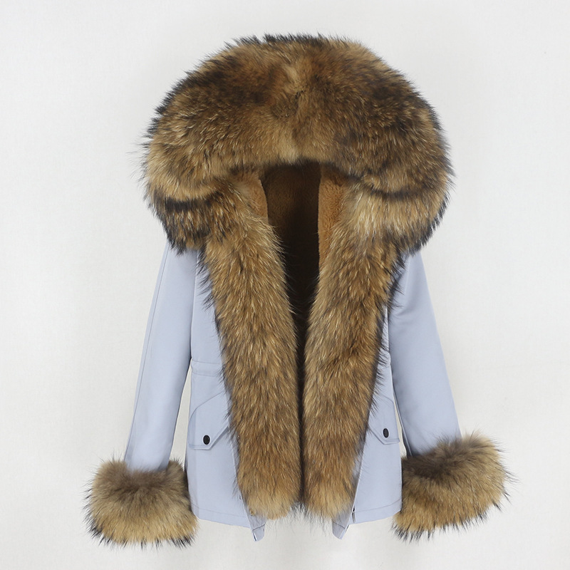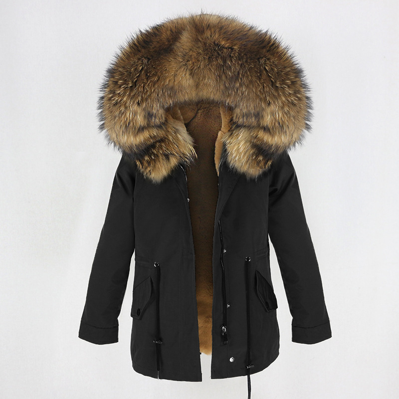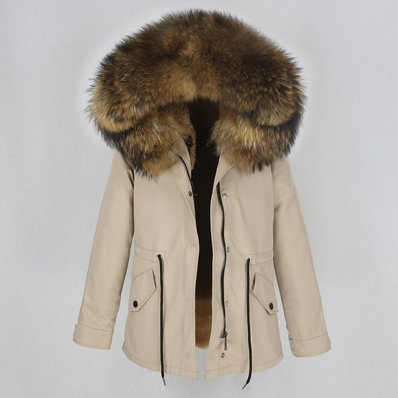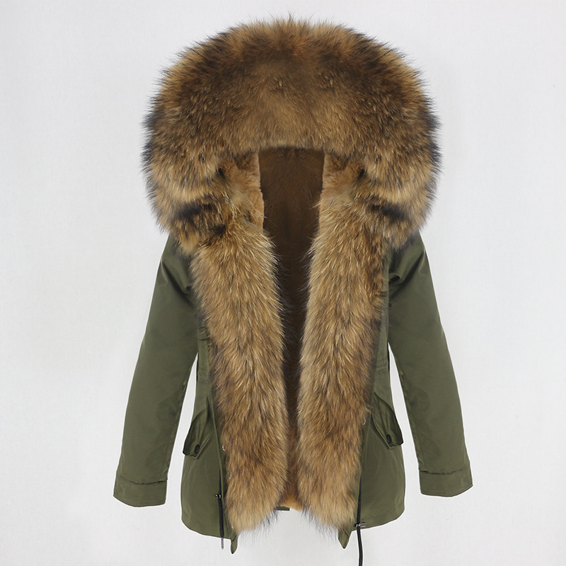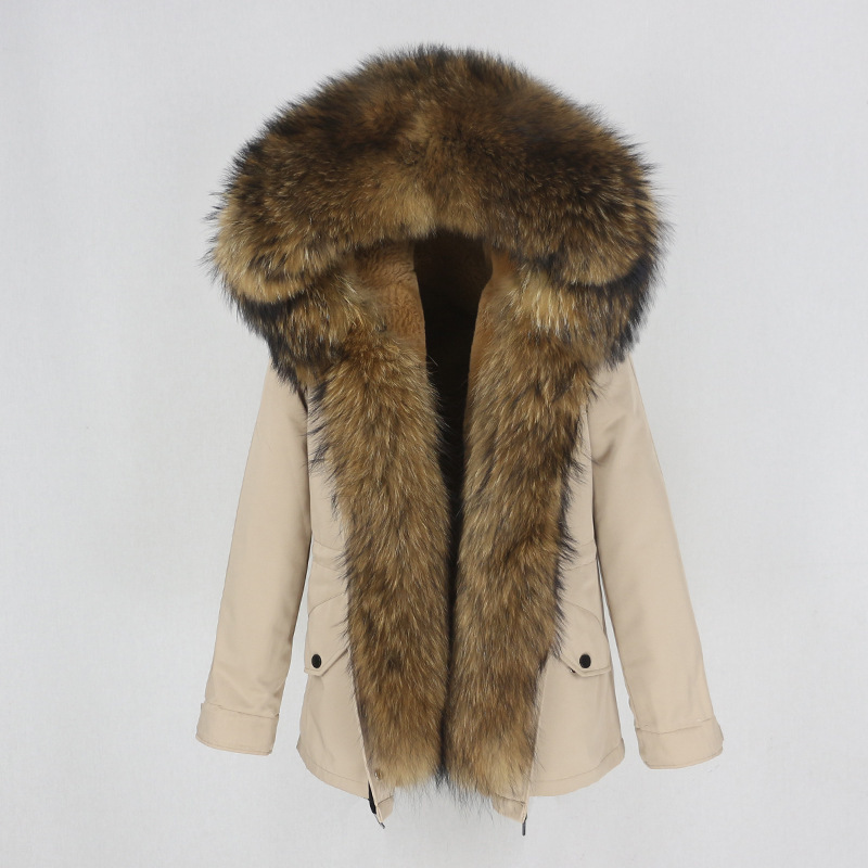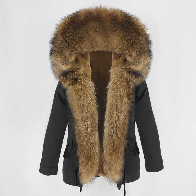 Women's Clothing Parka With Thickened Artificial Fur Lining, Detachable Real Raccoon Fur, Large Fur Collar Jacket
