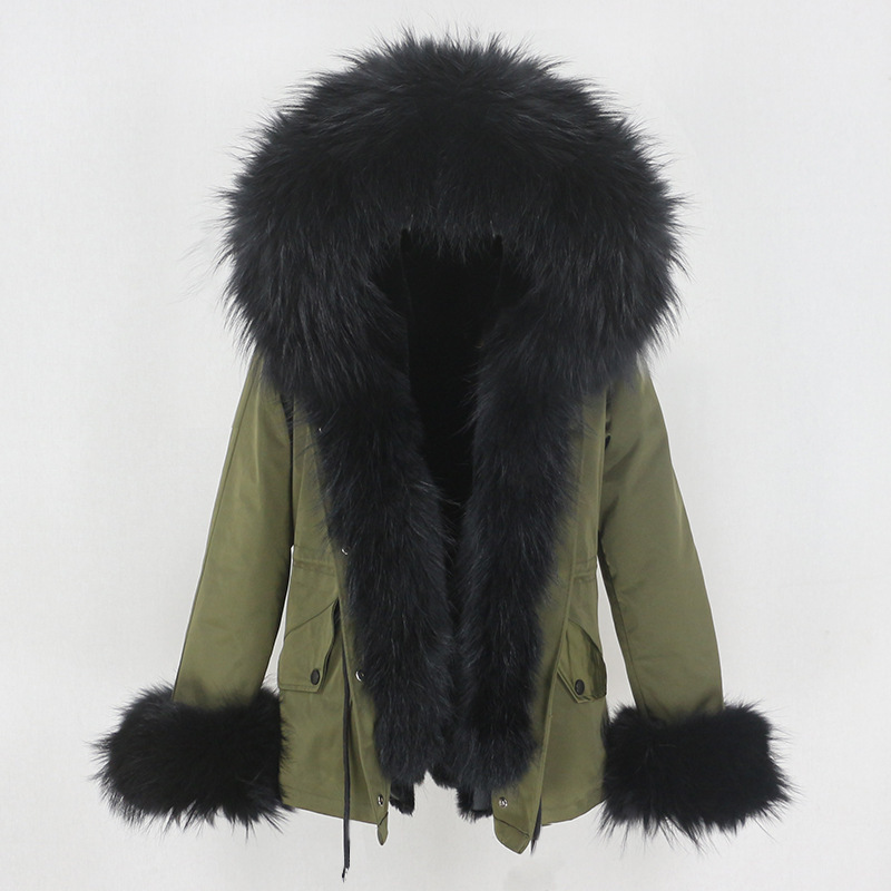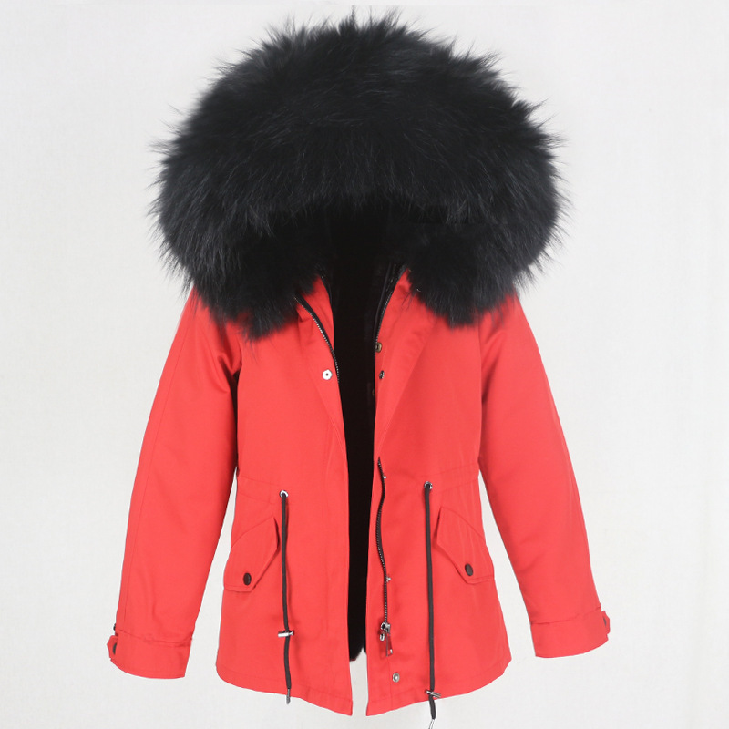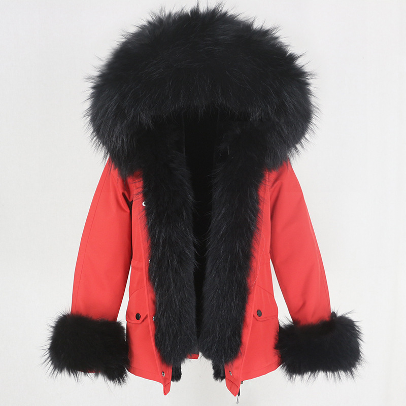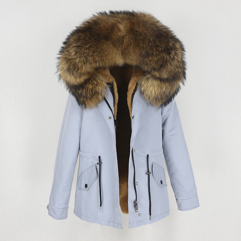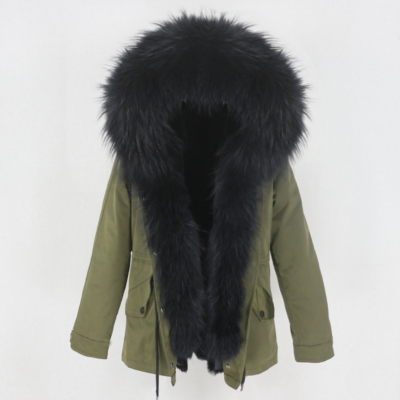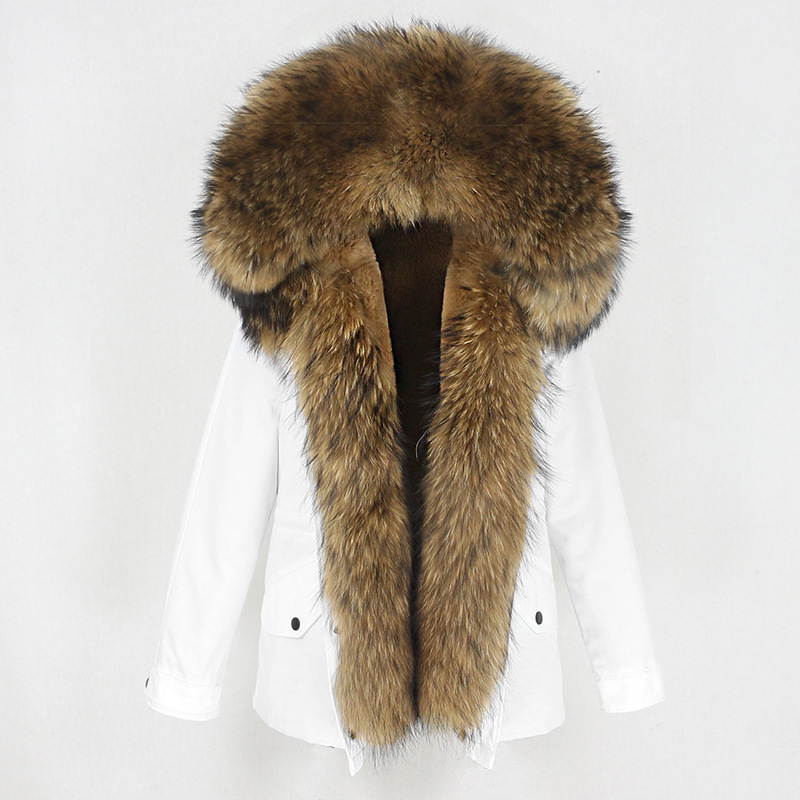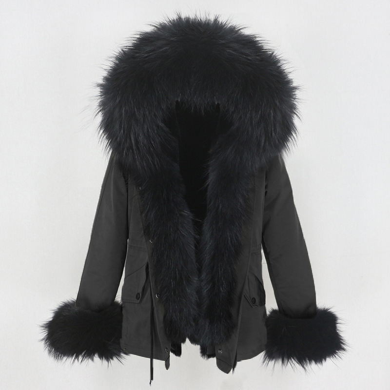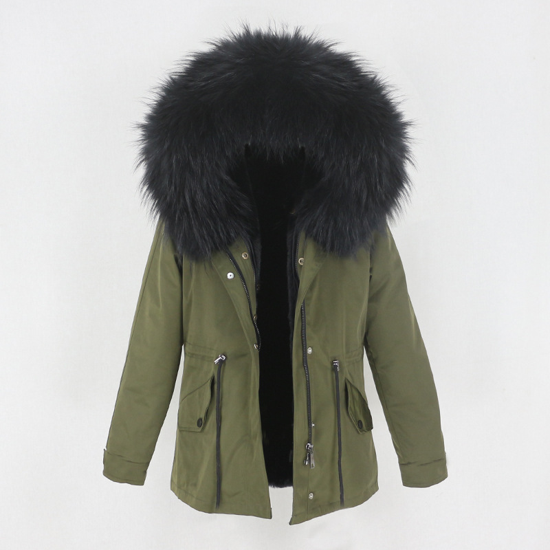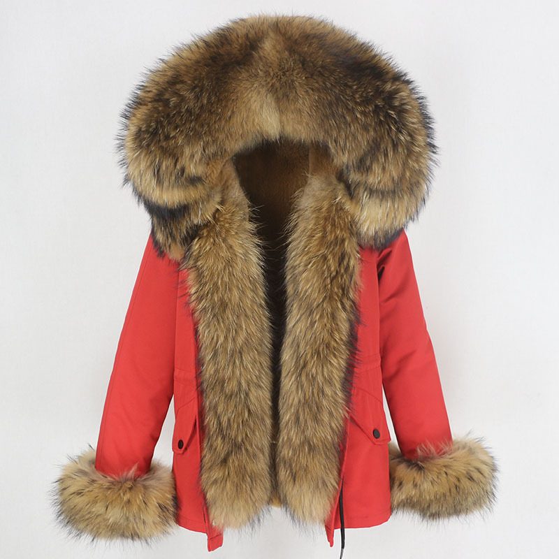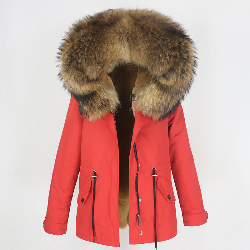 Women's Clothing Parka With Thickened Artificial Fur Lining, Detachable Real Raccoon Fur, Large Fur Collar Jacket